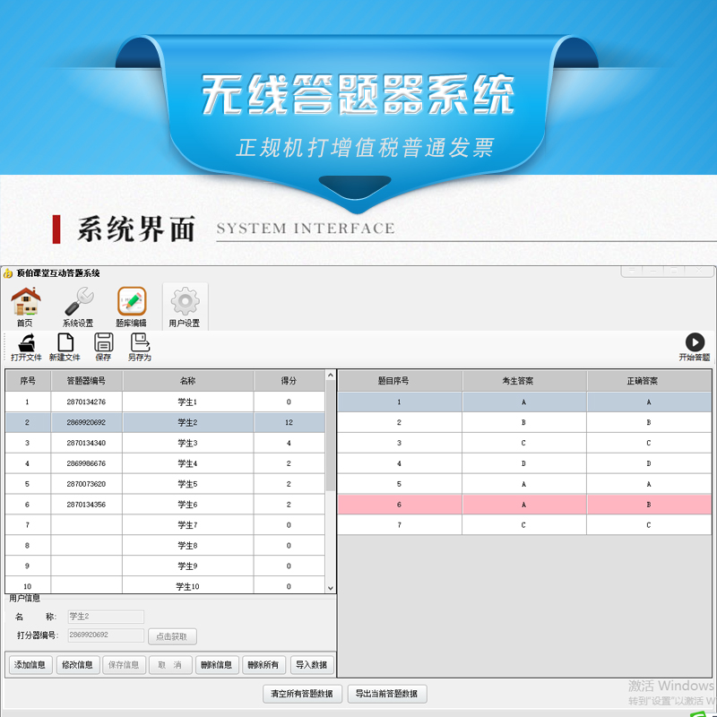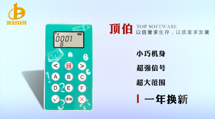 顶伯课堂互动答题系统可以批量导入答题数据,实时检测学生的答题进度及答题情况,而且可以实时检测学生成绩的排名情况,支持订做,欢迎咨询