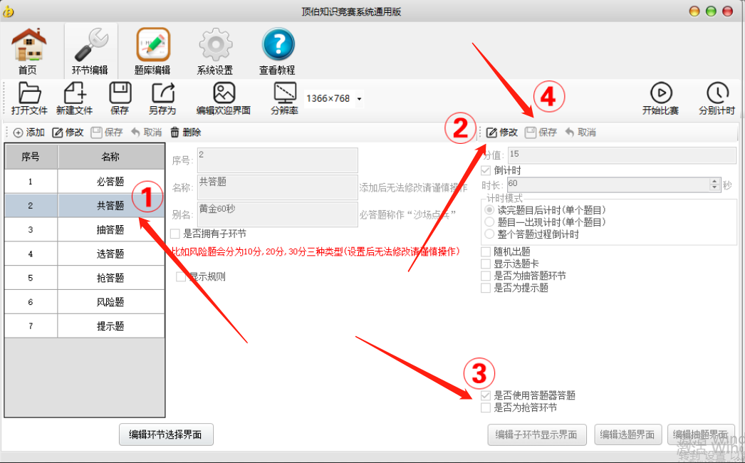 1、在环节编辑界面选中需要使用答题器答题的环节;