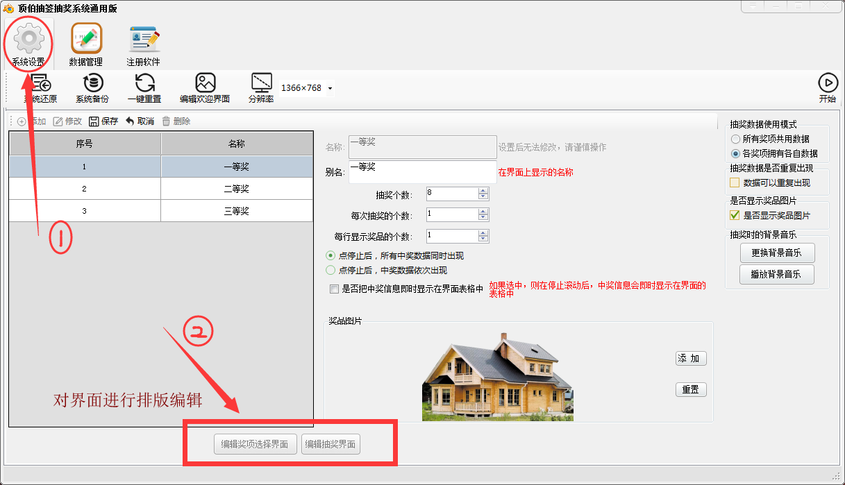 ③抽奖界面编辑: