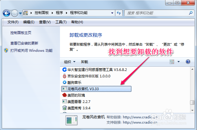 3、在右侧找到想要删除的程序,在上面双击鼠标左键就是提示你是否删除程序,选择是就可以了。