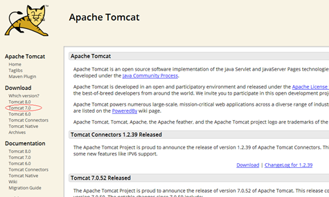 在左侧Download区域选择Tomcat 7.0,如下图所示: