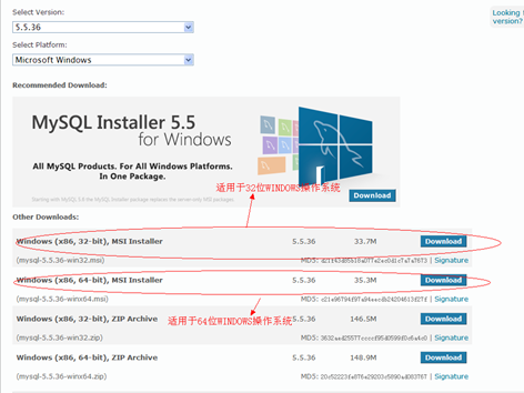 下载地址:http://dev.mysql.com/downloads/mysql/5.5.html#downloads