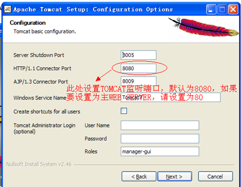更改TOMCAT端口号和网站根目录都需要修改TOMCAT配置文件,配置文件地址在:TOMCAT安装目录/conf/server.xml,详细修改方法请参见TOMCAT配置方面的大量相关文章,本文档内三言两语远远不能陈述清楚。