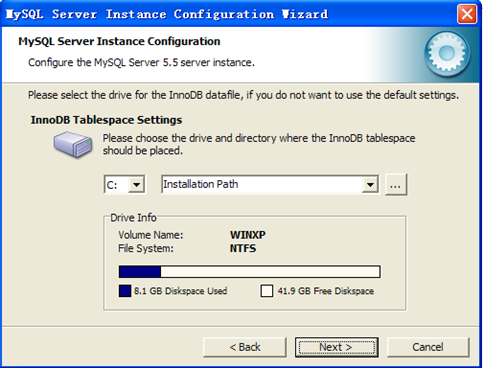 此处选择InnoDB表空间的存储位置,一般默认不需要修改: