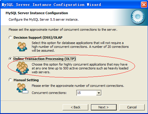 此处选择是【OLAP/联机分析处理】还是【OLTP/联机事务处理】数据库,选择OLTP,这样会增加处理速度和大并发连结支持(考试系统的主要功能是联机事务处理)。