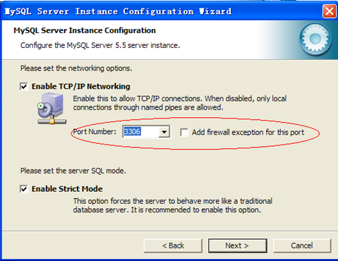 数据库端口号设置,此步非常重要,默认为3306端口,请确保您的电脑TCP3306端口没有被占用,否则安装将失败。此处可以改为1-65535的其它端口,若进行了修改请在考试系统的数据库连接配置中修改为对应端口。