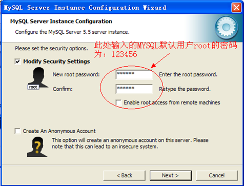 MYSQL默认根用户密码,此步非常重要,请设置您的密码并记牢(经常有用户设置密码后瞬间忘记,然后折腾重装)。考试系统的默认密码为123456,如果您不想麻烦增加配置工作量,请将密码设置为123456。