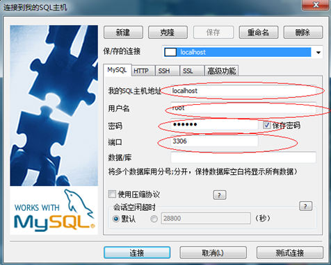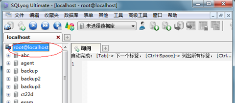 SQLYOG的安装无需多说,全部下一步完成(有的SQLYOG是绿色软件,直接双击主程序)。安装完成后运行软件出现如下界面,主机地址默认填写本机地址:localhost,用户名填写MYSQL保留的根用户:root,密码填写您刚才在安装MYSQL过程中设置的密码(当时推荐的是123456),端口号填写3306(默认为3306,如果您在安装过程中设置了其它端口号,请在此处修改为对应端口号)。输入完成后点击连接,将进入数据库管理界面。