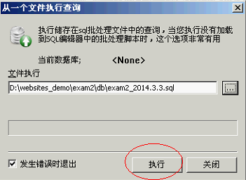 点击【执行SQL脚本】后,将出现如下面板,选择考试系统目录中db下的.sql文件,然后点击【执行】,等待数据库将导入完成。
