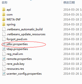 将看到如下图所示目录结构,用记事本打开jdbc.properties这个文件: