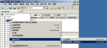 请定期做数据库备份,运用SQLYOG备份,进入SQLYOG后,在数据库上点右键,将打开如下界面,点【备份/导出】--【备份数据库,转储到SQL】。