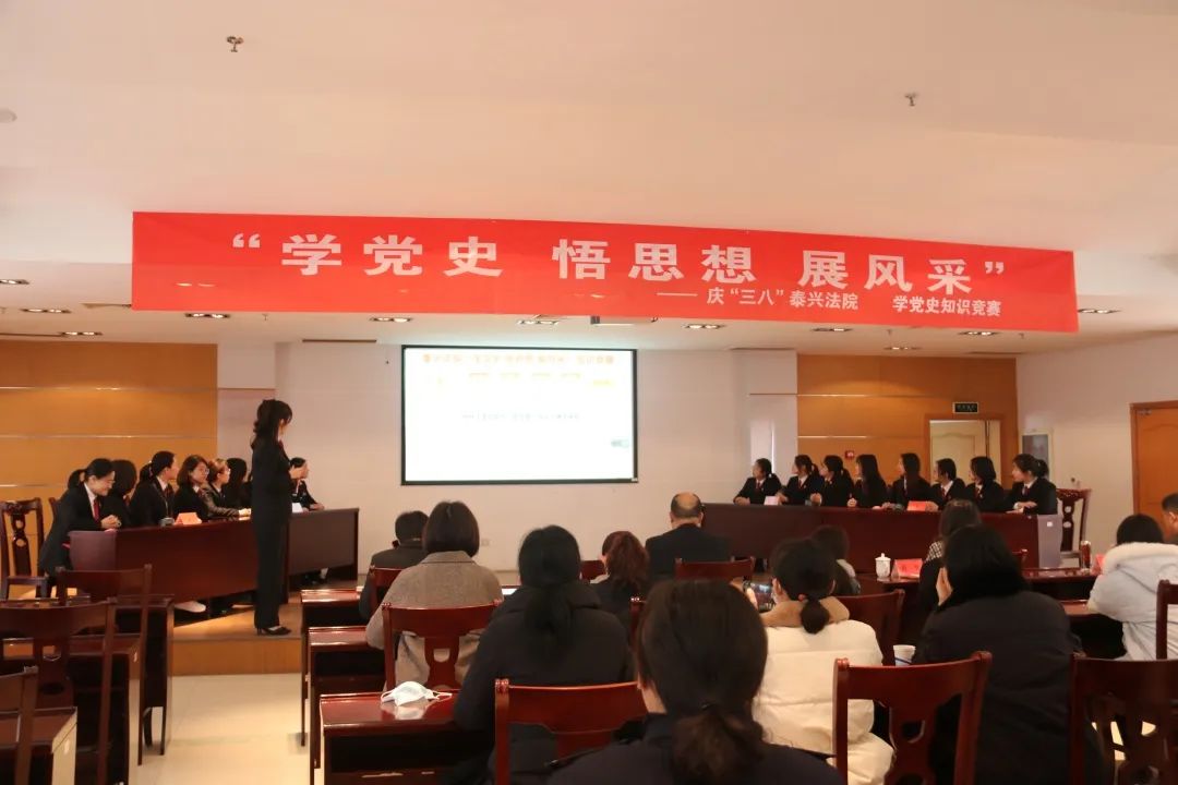 3月8日上午,泰兴法院组织全体女干警举办“学党史 悟思想 展风采”知识竞赛活动,以庆祝“三八”妇女节,喜迎中国共产党成立100周年。