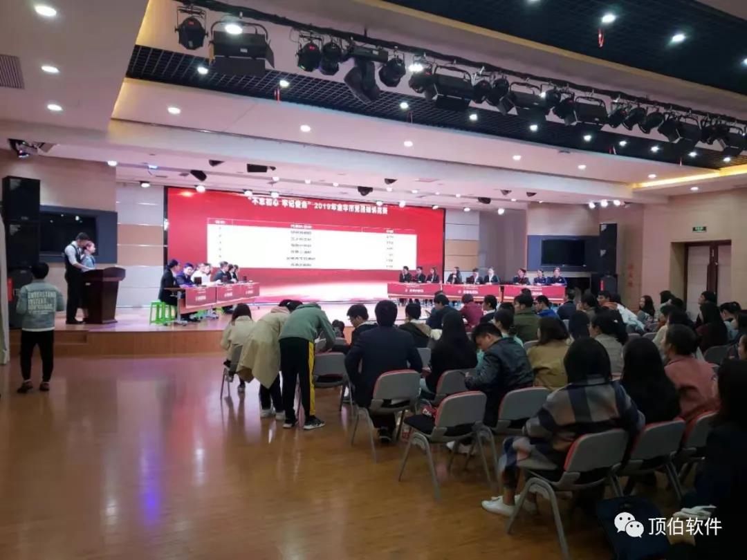 在以往的知识竞赛活动中,往往存在这样一个问题,题目显示在大屏上,台下的观众看题很方便,但是台上的选手呢?背对着观众一起看大屏?貌似有点不雅观,背对大屏,面向观众,那看题怎么办?于是有了下图的解决方案,代表队分成两拨,一边一半,呈八字形分布。这样在一定程度上解决了看题的问题,但所有的选手都得斜视,距离大屏远的选手要跨过一个个障碍才能看到题目,个子要是矮,还不一定能看得到;距离屏幕近的选手基本上要扭头看屏幕了,那场面,大家可以想像一下,是不是有点儿不美观;