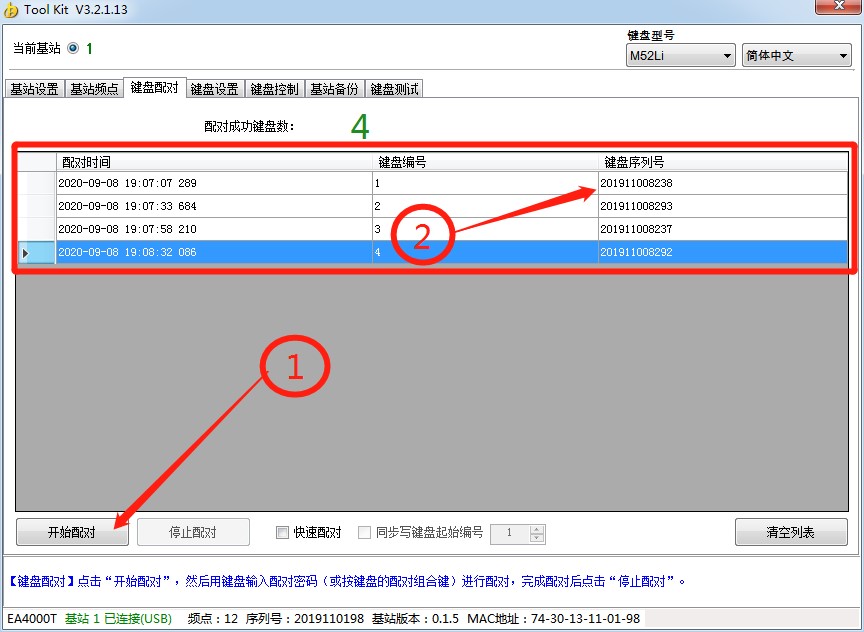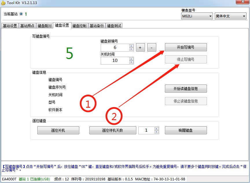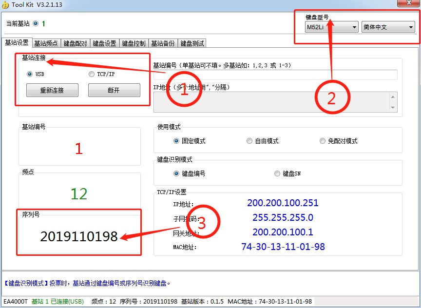 1.4设置工具: 硬件设置工具,用于键盘配对、编号、测试,基站备份等