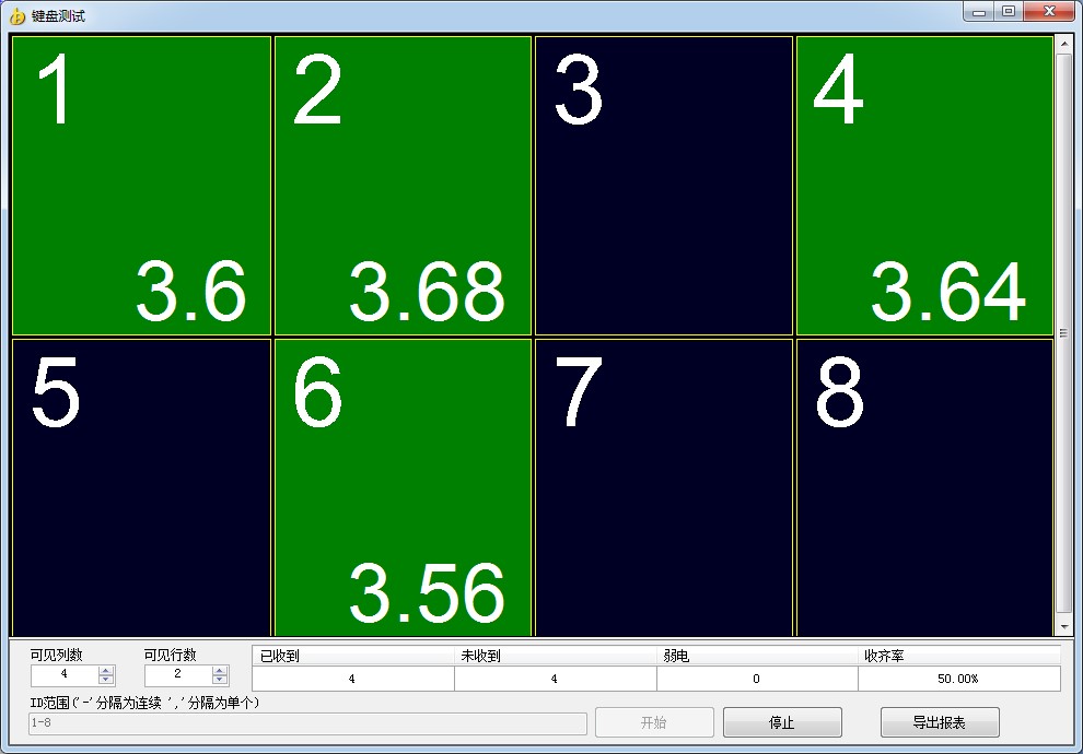 2.4键盘测试:确认键盘未进入休眠状态,点击键盘测试,查看键盘连接状况(注:注:绿色表示键盘在线,蓝色表示键盘不在线,红色表示键盘弱电。