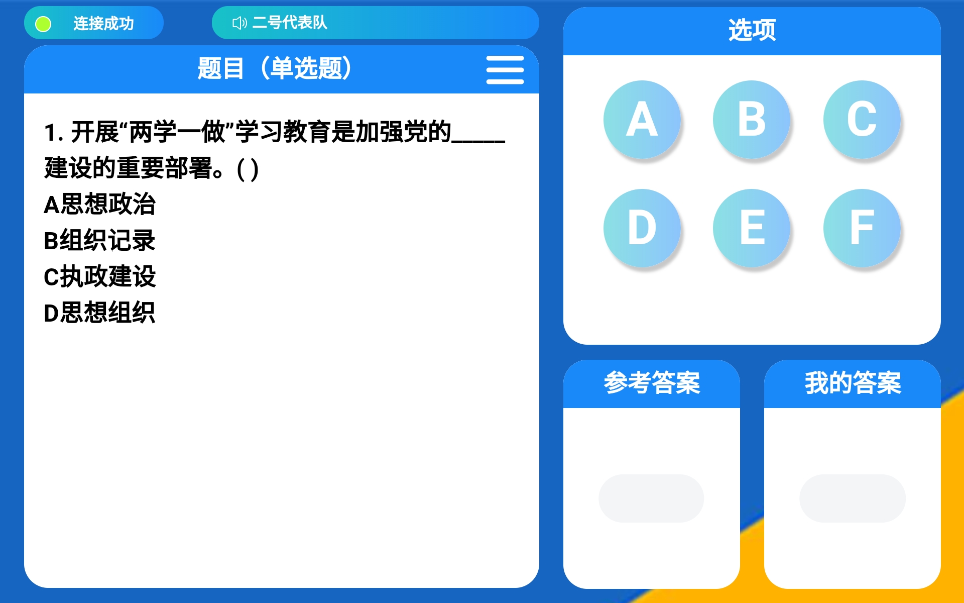 8、知识竞赛管理端进入答题界面后,平板答题软件的画面,如下图所示: